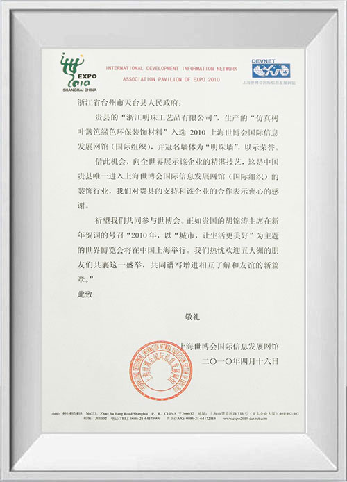 浙江明筑新材料股份有限公司坐落于浙江省風(fēng)景秀麗的5A級(jí)風(fēng)景名勝區(qū)天臺(tái)縣,是專業(yè)生產(chǎn)仿真植物墻的企業(yè),產(chǎn)品出口100多個(gè)國家,是生產(chǎn)仿真植物墻產(chǎn)品的先驅(qū)企業(yè),廠區(qū)現(xiàn)有建筑面積13萬平方米。公司建立的ISO9001國際質(zhì)量管理體系、ISO14001環(huán)境管理體系標(biāo)示著明筑產(chǎn)品的優(yōu)良品質(zhì);明筑擁有優(yōu)秀的技術(shù)研發(fā)能力先后獲得的歐美多個(gè)國家七十多項(xiàng)專利,公司自主研發(fā)多條生產(chǎn)線設(shè)備。榮獲國家高新技術(shù)企業(yè)、浙江省名牌產(chǎn)品、浙江省出口名牌企業(yè)、浙江省知名商號(hào)、浙江省誠信企業(yè)、浙江省信用管理示范企業(yè)、浙江省科技型企業(yè)、浙江省成長(zhǎng)型企業(yè)和臺(tái)州市級(jí)的專利示范企業(yè)、與企業(yè)技術(shù)中心等榮譽(yù)稱號(hào)。