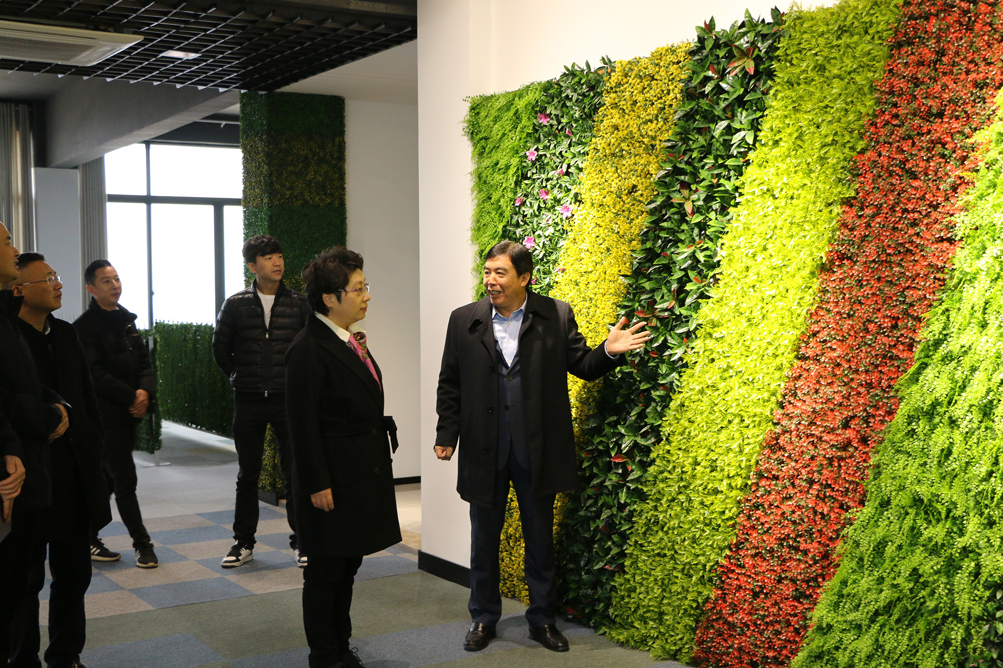 徐董事長(zhǎng)為楊縣長(zhǎng)介紹了明筑公司的發(fā)展近況和仿真植物墻仿真樹(shù)葉籬笆產(chǎn)品