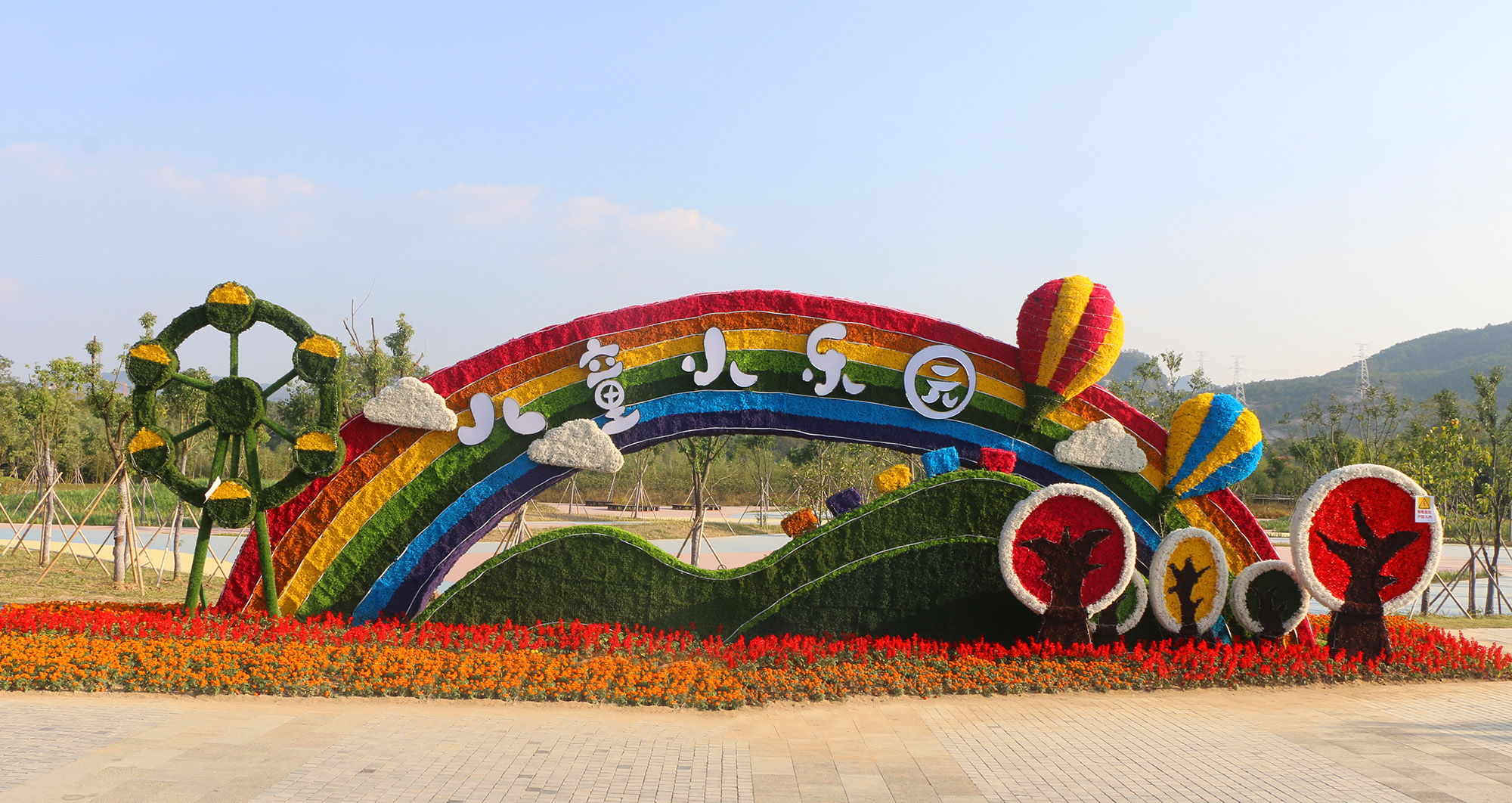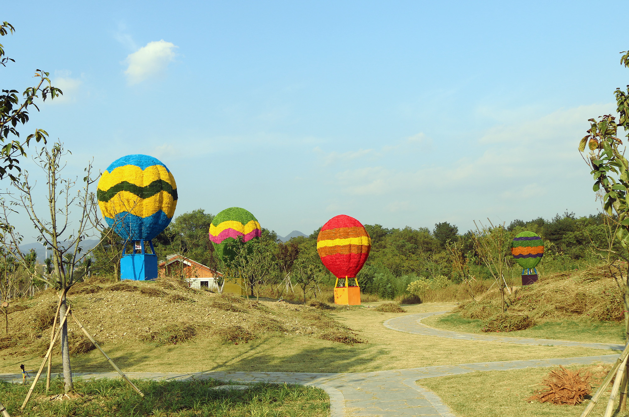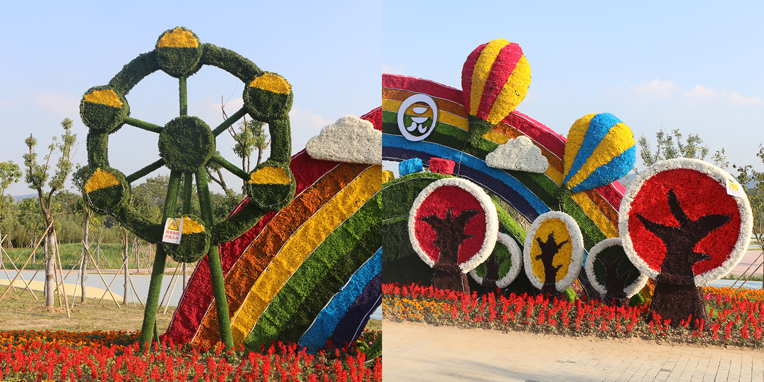 兒童樂(lè)園的另一側(cè)是熱氣球群,色彩繽紛的熱氣球營(yíng)造出一個(gè)美麗的童話世界