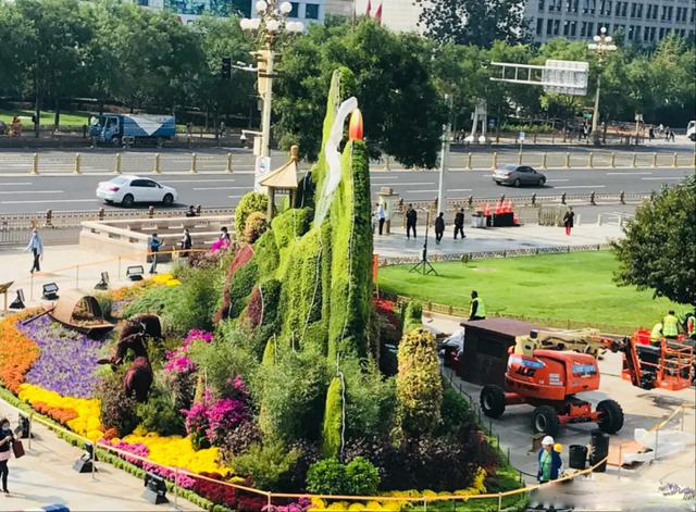 ??2020年國慶臨近,天安門及長安街周邊的各色主題慶典綠雕已經(jīng)出爐,讓我們一睹她的芳容!天安門廣場中心“祝福祖國”巨型花籃.